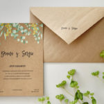Invitación principal: Dimensiones: A5 (14,8 x 21 cm) Grosor: 300 gr. / Sobre en 140 gr: C5 (16,2 X 22,9 cm) / Demás piezas en 300 gr: Tarjeta detalles: A6 (10,5 x 14,8 cm) / Nº cuenta: 8,5 x 5,5 cm / Menú: 10,5 x 21 cm / Mesero: A5 (14,8 x 21 cm) / Seating: A5 (14,8 x 21 cm) / Adhesivos: 4 cm diámetro / Etiqueta: 4 cm diámetro